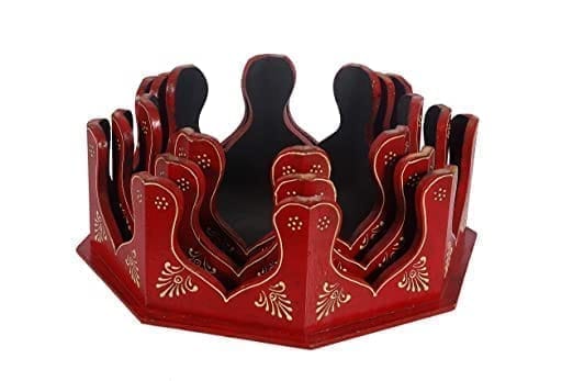 Kusum Art and Crafts Wooden hanipainted Bajot with Polish and Brass Fitted Set of 3 (16x16x6, 14x14x6, 12x12x6, Red) sku